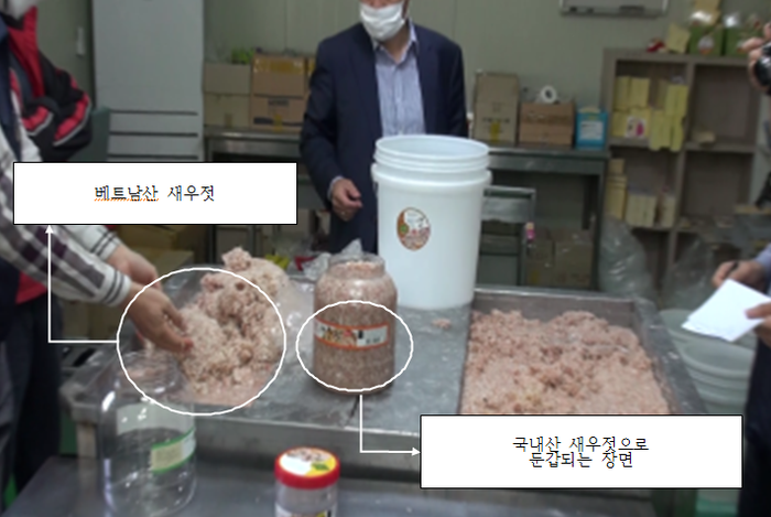 이에, 특사경은 국립수산물품질원과의 공조수사로 판매장소별, 유통기한별 새우젓의 원산지를 사전에 조사한 후 의심되는 국내산 새우젓 제품을 우선 검사하였으며, 그 결과 22개 제품이 베트남산 새우젓으로 밝혀져 압수수색영장을 집행하였다. 영업주는 압수수색영장 집행 당일에도 베트남산 새우젓을 국내산으로 둔갑시켜 작업 중에 있었으며, 이러한 원산지 둔갑 행위로 지금까지 2억 9천만 원 상당의 부당 이득을 챙긴 것으로 밝혀졌다.