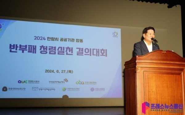 [프레스뉴스] 장현준 기자= 안양시 7개 공공기관은 27일 오후 2시 안양아트센터 수리홀에서 ‘안양시 공공기관 합동 반부패 청렴실천 결의대회’를 열어 투명하고 공정한 조직문화를 조성하고 공공기관으로서 사회적 책임을 다할 것을 다짐했다.
