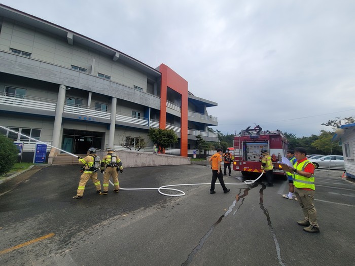 이번 합동소방훈련은 가족 및 학교단체 청소년들이 많이 이용하는 청소년수련원 내에 화재발생시 신속하고 안전하게 초기 대응을 하는 것을 목적으로 했다.