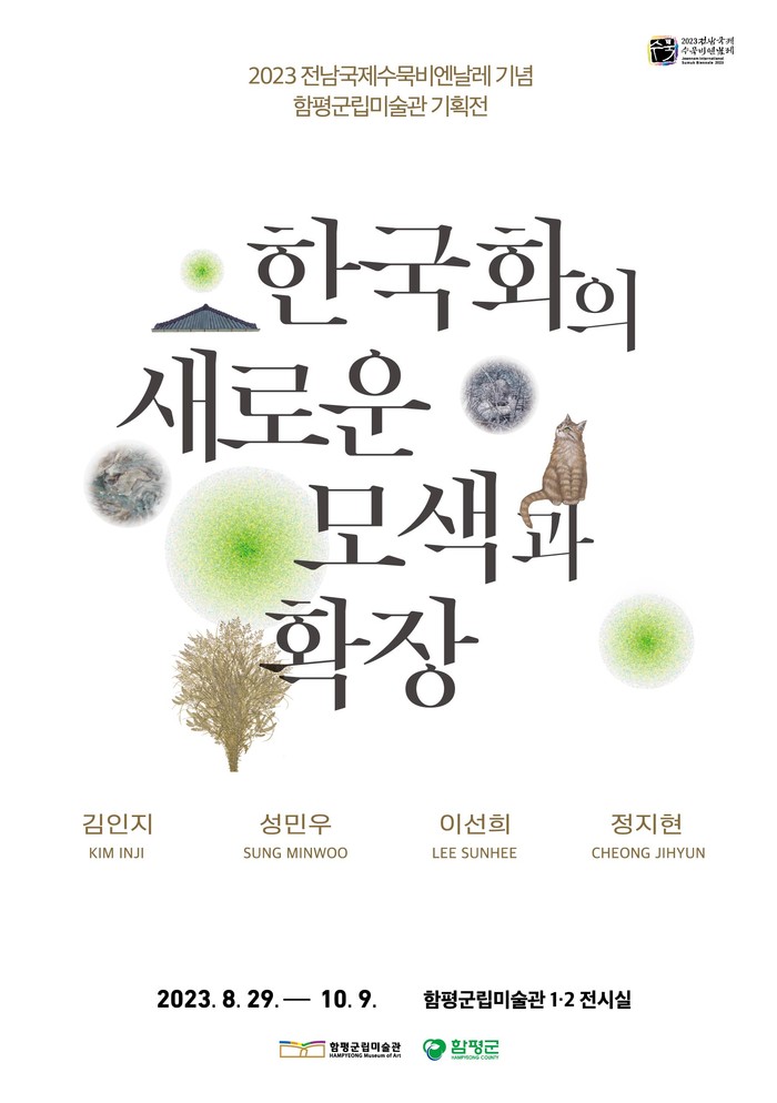 [전남=프레스뉴스] 차윤기 기자= 전남 함평군립미술관은 2023년 전남국제수묵비엔날레를 기념해 오는 8월 29일부터 10월 9일까지 특별 기획전 《한국화의 새로운 모색과 확장》을 개최한다.