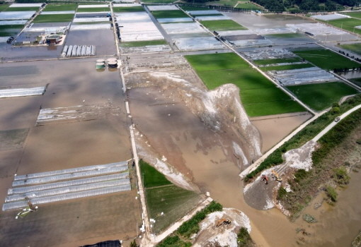 ▲집중호우로 피해가 집중됐던 충남 청양군 청남면 인양리 농경지가 물에 잠겨 있다. (사진= 뉴스1) |