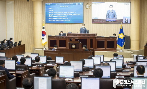 시의회는 이날 본회의장에서 의원들과 시 및 의회사무국 관계자들이 참석한 가운데 진행한 정례회 제1차 본회의에서 회기 관련 안건과 예산결산특별위원회 구성결의안 등을 의결했다.