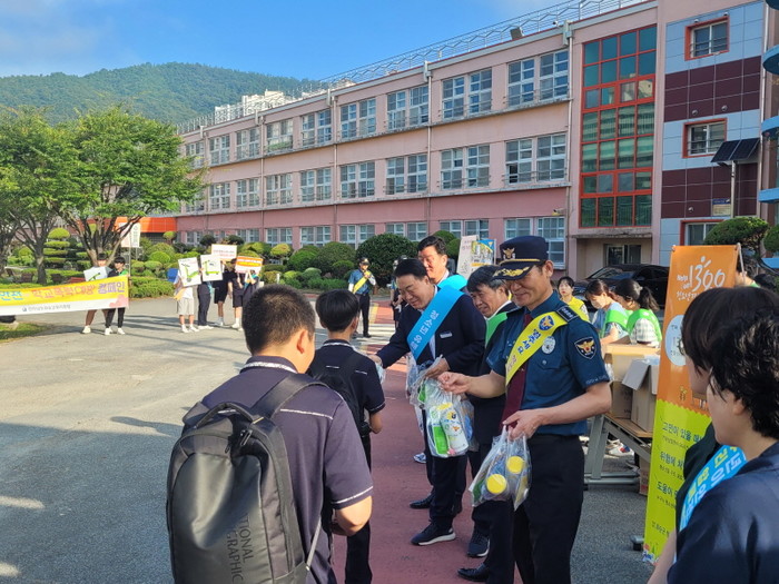 | ▲화순교육지원청 화순중학교 교통안전‧학교폭력 예방 캠페인 실시 (사진제공=화순군) |