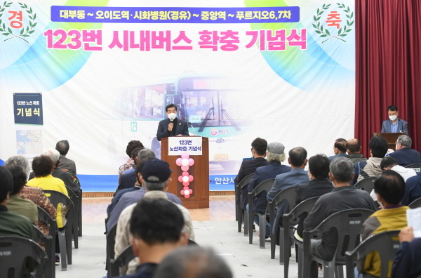 시는 27일 대부문화센터에서 대부동 주민 숙원 해결을 기념하는 123번 버스 노선 확충 기념식을 개최했다.