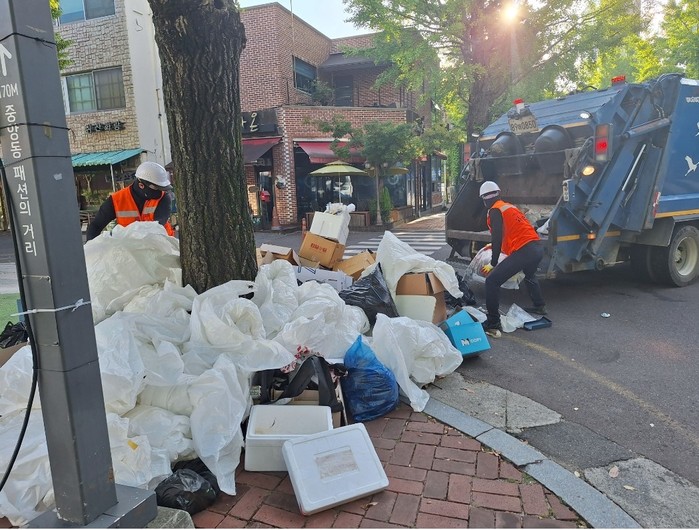 또한, 생활쓰레기는 종량제봉투와 재활용쓰레기로 분리하여 두 번에 걸쳐 수거운반된다. 그러나 배출 현장에서는 종량제봉투, 재활용쓰레기, 무단투기가 혼재되어 있어 환경미화원이 직접 분리하여 수거하는 데 어려움이 있다. 이로 인해 근무시간 내 수거.운반은 역부족인 상황이다.