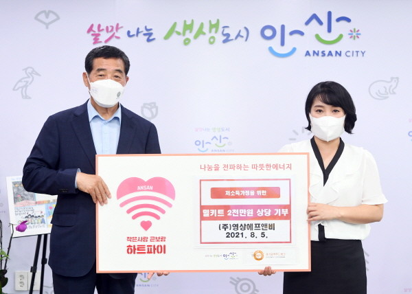 이날 안산시청에서 열린 전달식에는 윤화섭 시장과 박상미 대표가 참석, 건전한 기부문화 활성화를 위한 발전방안 등을 논의했다.