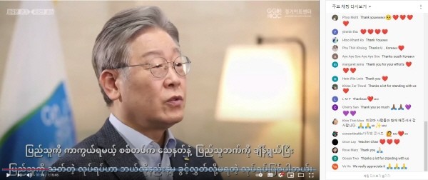 동영상을 본 많은 미얀마인들은 ‘한국 사람들한테 정말 정말 감사합니다’, ‘사랑하고 도움을 부탁한다’는 내용의 댓글을 달며 감사의 뜻을 표하고 있다. 한국 사람들도 동영상을 보며 ‘진정한 미얀마의 봄이 오리라’, ‘미얀마 민주주의를 진심으로 응원한다’며 응원과 격려의 댓글을 남기고 있다.