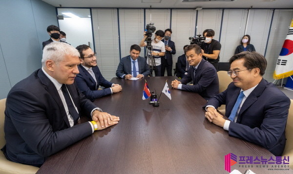 이날 만남은 한-세르비아 의원 친선연맹 관련자 회의 참석 등을 위해 방한한 세르비아공화국 방문단이 김 지사와의 면담을 요청하며 이뤄졌다.