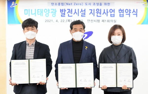 [프레스뉴스] 강보선 기자=안산시(시장 윤화섭)는 22일 미니태양광 보급 확대를 위해 ‘미니태양광 발전시설 지원 사업 업무 협약식’을 열고 관련 사업을 추진하기로 했다.