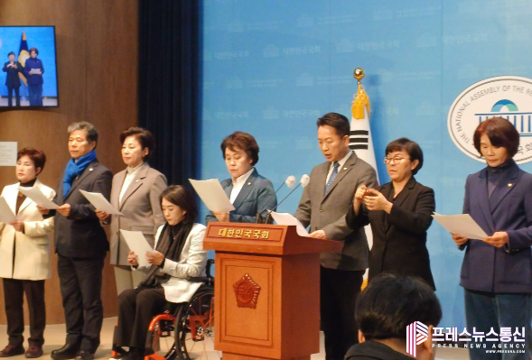 이날 기자회견에는 더불어민주당 소속 보건복지위원회 위원 일동(고영인, 한정애, 남인순, 전혜숙, 정춘숙, 최혜영, 서영석)이 함께했다.