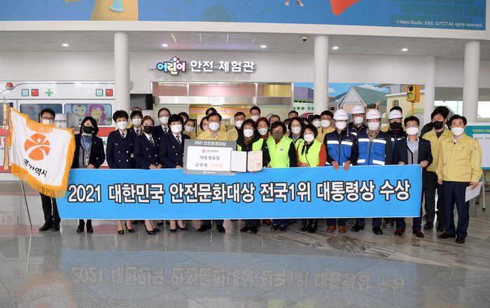 [전남=프레스뉴스] 강래성 기자= 광주광역시는 9일 행정안전부 주관으로 정부세종컨벤션센터에서 열린 ‘2021 안전문화대상’ 시상식에서 대통령 기관표창을 수상하고, 인센티브로 재난안전특별교부세 6억원을 교부받았다고 10일 밝혔다.