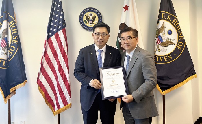 이어, 김 사장은 캘리포니아 소재 미셸 스틸(Michelle Steel) 미 연방 하원의원 지역구 사무실을 방문해 미셸 스틸 의원으로부터 대미 농수산식품 수출 확대와 한미 경제 관계 발전에 기여한 공로로 감사장을 받았다. 현장에서 김 사장은 미셸 스틸 의원의 K-푸드에 대한 남다른 애정과 성원에 대한 감사 인사를 전한 뒤, K-푸드 수출 확대와 ‘김치의 날’이 미국 연방 의회 차원에서 제정될 수 있도록 협조를 요청했다. 그리고 먹거리 차원의 탄소 배출량 줄이기 캠페인인 저탄소 식생활 ‘그린푸드 데이’에 동참해 탄소중립 실현에 함께 앞장서길 희망한다고 밝혔다.