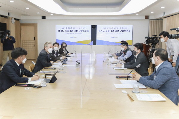 [프레스뉴스] 강보선 기자= 경기도가 경기주택도시공사 등 7개 공공기관을 경기북.동부지역으로 이전하는 3차 공공기관 이전을 추진하고 있는 가운데 이재명 경기도지사가 찬반 입장 도민 대표들과 함께 공공기관 이전을 주제로 난상토론을 진행했다.