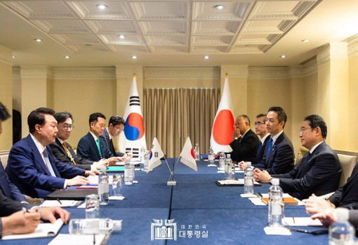 | ▲윤 대통령이 10일(현지시간) 미국 워싱턴DC 한 호텔에서 기시다 후미오 일본 총리와 한-일 정상회담을 하고 있다. (사진= 대통령실) |
