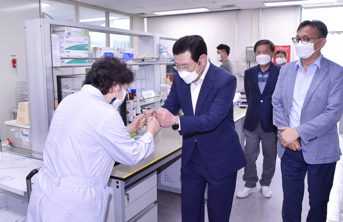 이날 이 시장은 덕남정수장에 위치한 경영부, 기술부, 수질연구소, 덕남정수사업소를 차례로 찾아 각 단계별 수돗물 공급 과정을 꼼꼼히 살폈다.