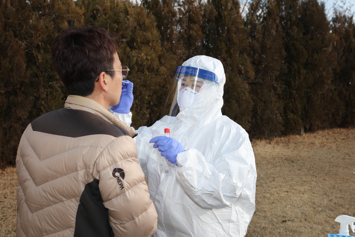 | ▲ 전직원 감염예방을 위한 PCR 선제 검사/신안군 제공 |