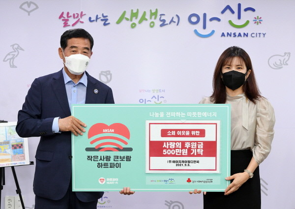 | ▲ 안산시, ㈜에이치케이엘디앤씨로부터 사랑의 후원금 500만 원 기탁 받아(사진=안산시) |