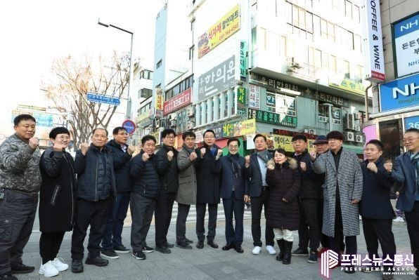| ▲ 31일 오후 성남시에서 김동연 도지사가 윤영찬 국회의원, 시의원, 및 성남시 상인연합회장등과 함께 기념촬영을 하고 있다.(사진=경기도) |