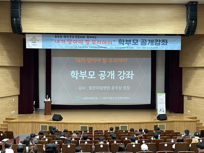 [전남=프레스뉴스] 강래성 기자= 나주시보건소(소장 강동렬)가 가정의 달을 맞아 최근 나주문화예술회관에서 학부모 200여 명을 대상으로 정신건강 공개강좌를 열었다고 8일 밝혔다.