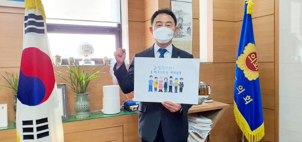 진용복 부의장은 “어려운 환경에서도 묵묵히 제자리에서 최선을 다하시는 필수노동자분들 덕분에 이 사회가 더욱 밝고 아름답다”며 “앞으로 필수노동자분들께서 존중받으며 일할 수 있는 행복한 일터 환경 조성을 위해 힘쓰겠다”고 밝히는 등 연이은 동참을 호소했다.