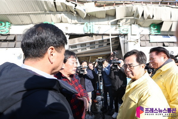 한편, 오늘(29일) 오전 김동연 경기도지사는 경기도 의회 최종현 더불어민주당 대표의원, 김정호 국민의힘 대표의원 및 안양지역 도의원들과 함께 폭설로 지붕이 무너진 안양 농수산물도매시장을 찾아 피해 상황을 살피고 상인들을 위로했다.