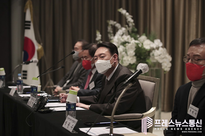 ▲ 8일 오후 윤석열 대선 후보가 서울 송파구 교통회관에서 열린 <힘내라 택시! 소통의 날> 정책간담회에 참석했다.(사진=국민의힘) |