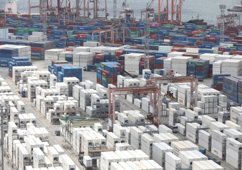 | ▲지난 21일 부산항 신선대부두 야적장에 컨테이너가 가득 쌓여 있는 모습.(사진= 뉴스1) |