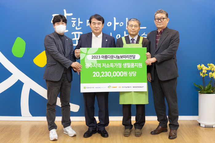 12일 시교육청에 따르면 이번 후원물품은 설 명절을 앞두고 아름다운가게 광주목포본부와 아모레퍼시픽이 후원했다. ‘아름다운 나눔보따리’는 총 2,000만원 상당의 식료품 및 생활용품으로, 반찬류·샴푸·바디워시·비누·이불·선물세트 등이 담겨 있다. 이는 관내 교육복지우선지원사업학교 초·특수학교 추천 돌봄세대 150명의 가정에 자원봉사자를 통해 전달돼 따뜻한 나눔을 전할 예정이다.