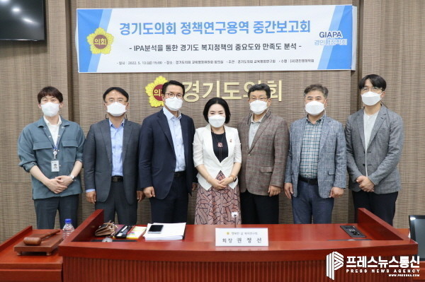 [프레스뉴스] 김대일 기자= 경기도의회 의원연구단체인 ‘행복한 삶 복지연구회(회장 권정선)’는 13일(금) 교육행정위원회 회의실에서 ‘IPA분석을 통한 경기도 복지정책의 중요도와 만족도 분석’ 연구용역 중간보고회를 통하여 지난 4년간 경기도가 추진했던 복지정책에 대한 성과를 평가하는 시간을 가졌다.