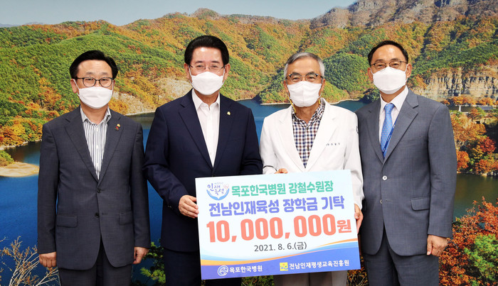 [전남=프레스뉴스] 강래성 기자= 전라남도는 6일 목포한국병원(원장 강철수)이 도내 학생들을 위해 써달라며 장학금 1천만 원을 (재)전남인재평생교육진흥원에 기탁했다고 밝혔다.