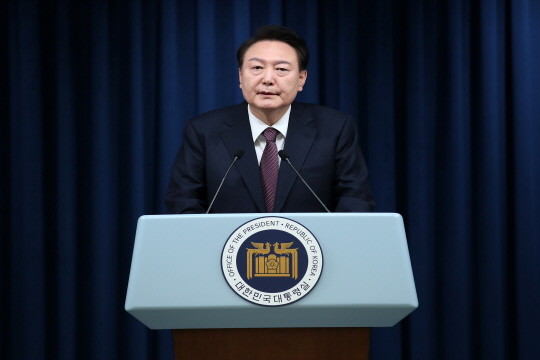 | ▲윤 대통령이 29일 서울 용산 대통령실 청사에서 2030 엑스포 부산 유치 실패와 관련, 대국민 담화를 하고 있다. (사진= 뉴스1) |