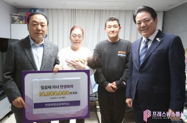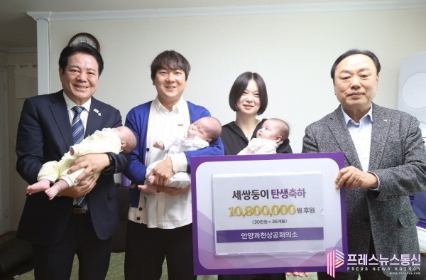 [프레스뉴스] 장현준 기자= 안양시(시장 최대호)와 안양과천상공회의소(회장 배해동)는 지난해 말 세쌍둥이를 출산한 동안구의 한 가정과 일곱째 자녀를 출산한 만안구의 한 가정을 축하 방문했다.