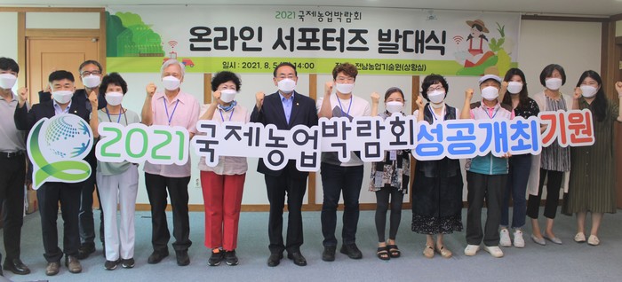 [전남=프레스뉴스] 강래성 기자=(재)전남국제농업박람회(이사장 김영록)는 지난 5일 전남농업기술원에서 ‘2021국제농업박람회’ 온라인 홍보를 담당할 온라인 서포터즈 발대식을 가졌다.