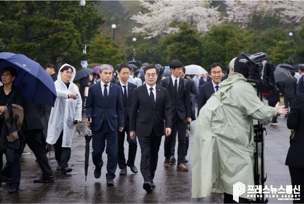 | ▲김동연 경기도지사가 3일 오전 제주특별자치도 제주시 제주 4·3 평화공원에서 열린 제76주년 제주 4.3희생자 추념식 행사장에 들어서고 있다.(사진=경기도) |