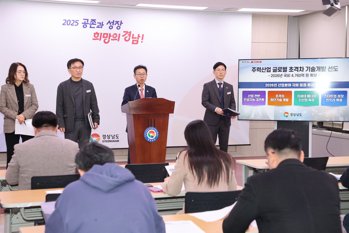 [프레스뉴스] 정재학 기자=경상남도는 2026년 산업분야 국비 4,760억 원을 확보했다고 밝혔다. 이는 올해 3,729억 원 대비 1,031억 원(28%) 증가한 역대 최대 규모다. 새정부 국정과제 반영, 중앙부처 설득, 국회 건의 등 3단계 전략을 통해 피지컬AI, 차세대 소형원전(SMR), 우주항공 등 역점사업을 신규 반영하며 성과를 달성했다.