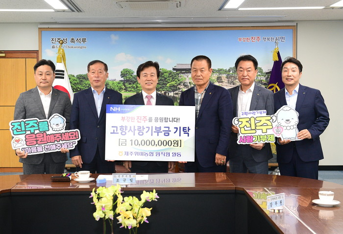 [프레스뉴스] 정호일 기자= 진주시는 15일 진주원예농협과 제주위미농협 임직원 간 고향사랑 상호기부 행사를 통해 제주위미농협 임직원의 고향사랑기부금 1,000만 원을 기탁받았다.