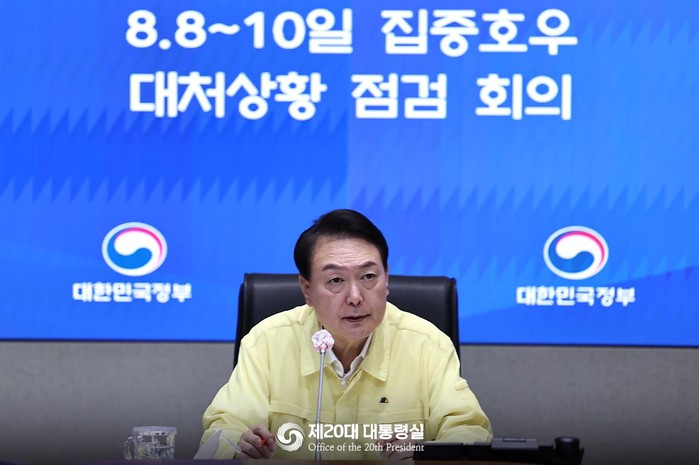 | ▲ 지난달 10일 윤 대통령이 폭우 피해 상황 점검회의를 주재하고 있다. (사진=대통령실) |