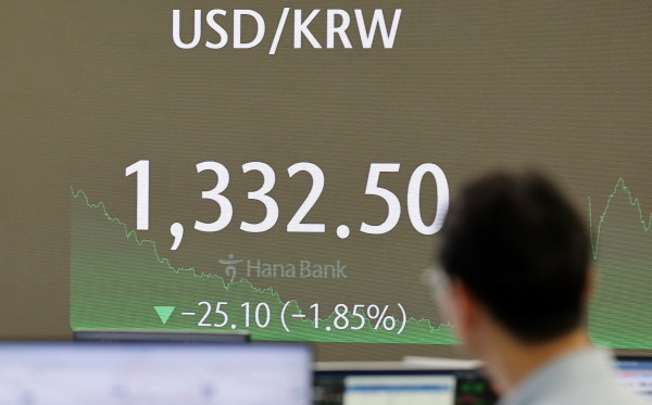 | ▲지난 19일 서울 중구 하나은행 본점 딜링룸 전광판에 종가가 표시되고 있다.(사진=뉴스1) |