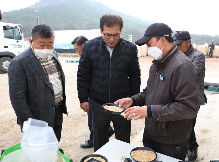 [전남=프레스뉴스] 강래성 기자= 이상익 함평군수가 24일 본격적인 벼 수매철을 맞아 공공비축미곡 매입 현장인 엄다면 송로창고를 방문해 수매벼를 살펴보고 있다.