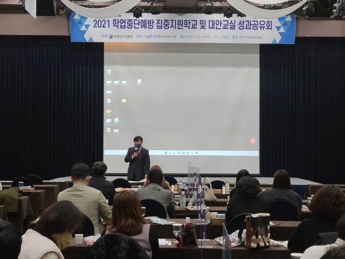 이와 관련, 도교육청은 16일(목) ~ 17일(금) 이틀 동안 여수 히든베이호텔에서 2021학년도 학업중단예방 집중지원학교와 대안교실 담당자를 대상으로 성과공유회를 가졌다.