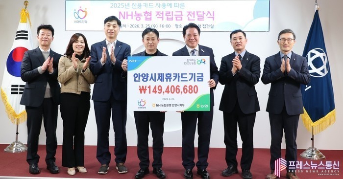 [프레스뉴스] 장현준 기자= 안양시(시장 최대호)가 NH농협으로부터 안양사랑 신용카드 사용적립금 약 1억4940만원을 전달받았다.