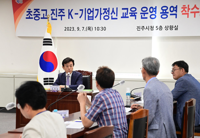 [프레스뉴스] 정호일 기자= 진주시는 7일 시청 5층 상황실에서 조규일 시장과 진주교육지원청, 중소벤처기업진흥공단, 경상국립대 등 유관기관 관계자가 참석한 가운데 ‘초중고 진주 K-기업가정신 교육 운영 용역’ 착수보고회를 개최했다.