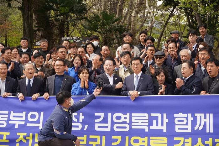 [프레스뉴스] 강래성 기자= 김영록 민주당 전남광주특별시장 예비후보가 10일 신정훈 국회의원, 강기정 광주광역시장과 함께 순천, 여수 등 지를 찾아 ‘동부권 민심 챙기기’에 나섰다.