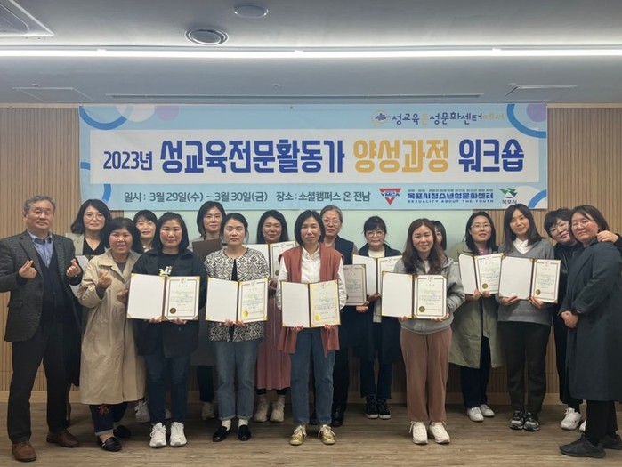 [전남=프레스뉴스] 이광남 기자= 목포시청소년성문화센터는 지난달 29일부터 3일간,‘2023년 성교육전문활동가 양성을 위한 기본입문과정 워크숍’을 진행하고 13명의 수료생을 배출했다.