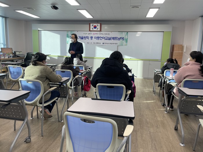 전라남도교육청은 1월 6일(목) 구례교육지원청을 시작으로 완도금일동초, 보성여중 등에서 베트남어, 캄보디아어, 태국어 등의 이중언어 교실을 열어 1주 또는 2주일 동안 집중 교육한다.