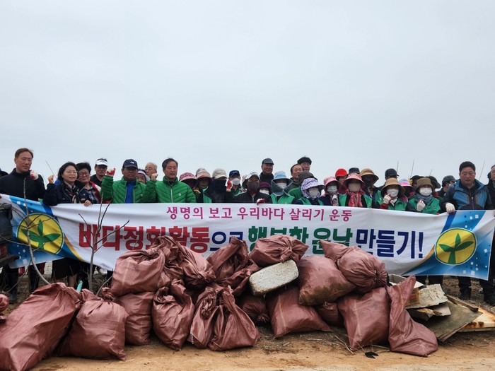이날 새마을지도자와 부녀회 회원들은 두곡마을 인근 바다에서 폐스티로폼과 폐어망, 플라스틱 등 각종 해양쓰레기 2톤을 수거했다.