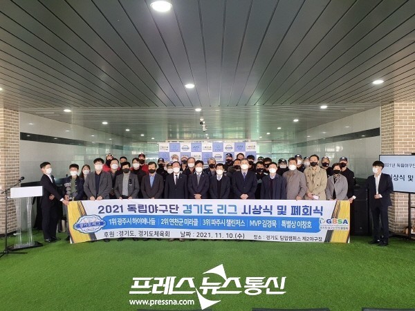 경기도는 10일 광주 팀업캠퍼스에서 ‘2021 독립야구단 경기도리그 폐회식 및 시상식’을 개최했다.