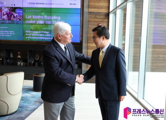 [프레스뉴스] 장현준 기자= 국제교류협력 강화와 해외투자 유치를 위해 미국을 방문 중인 김동연 경기도지사가 바이오콤 캘리포니아(이하 바이오콤 CA)를 찾아 경기도 바이오산업 육성을 위한 파트너십 구축 방안에 대해 의견을 나눴다.