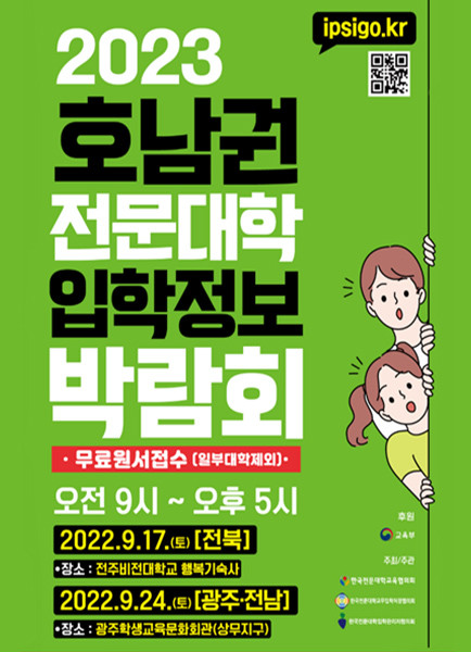 [광주=프레스뉴스] 강래성 기자= 광주시교육청이 오는 24일 9~17시 ‘2023학년도 호남권(광주지역) 전문대학 입학정보박람회’를 광주학생교육문화회관 1층(배드민턴장)에서 개최한다.
