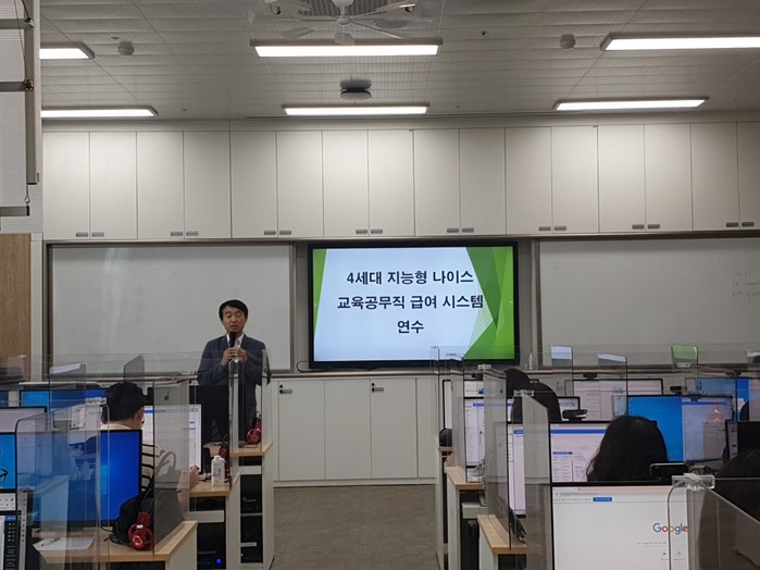 교육공무직 급여 업무담당자 130여 명을 대상으로 한 연수는 이번에 새로 도입된 4세대 지능형 나이스 급여 관련 시스템 사용 방법 등 업무 변화에 대응하는 실무(현장)중심의 직무역량 강화를 위해 마련됐다.